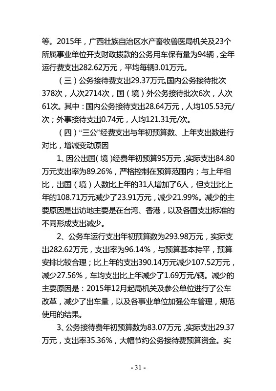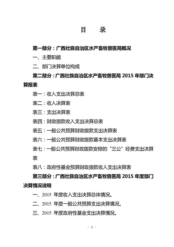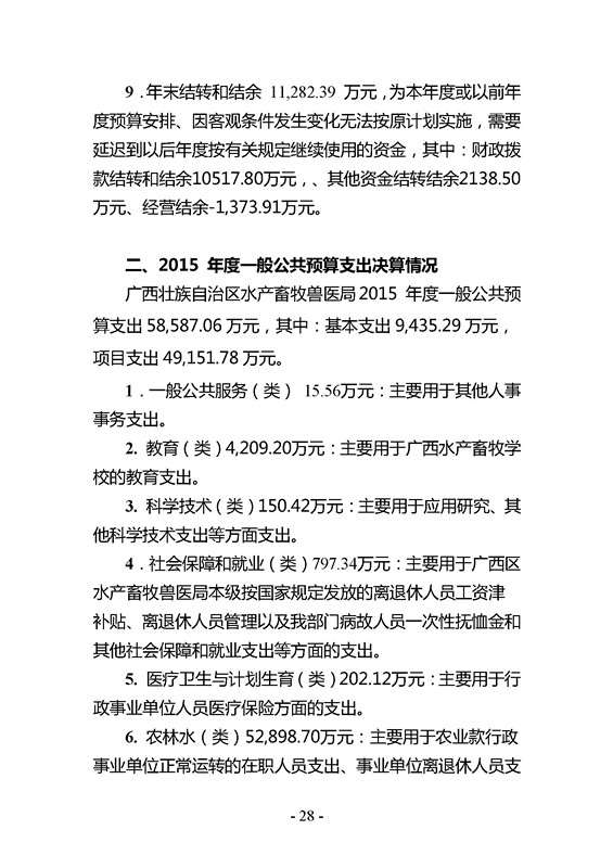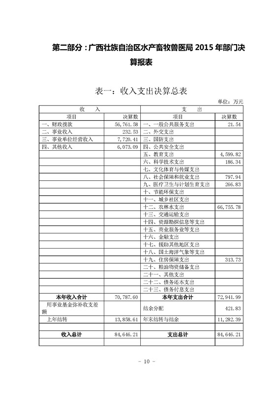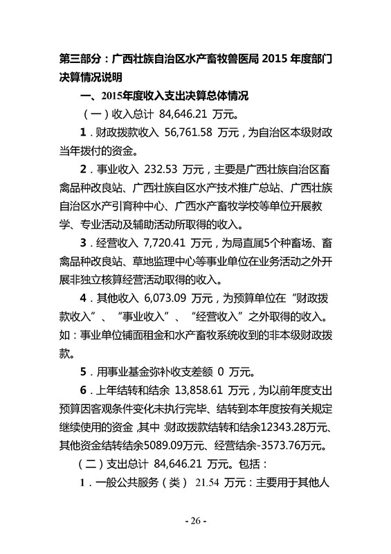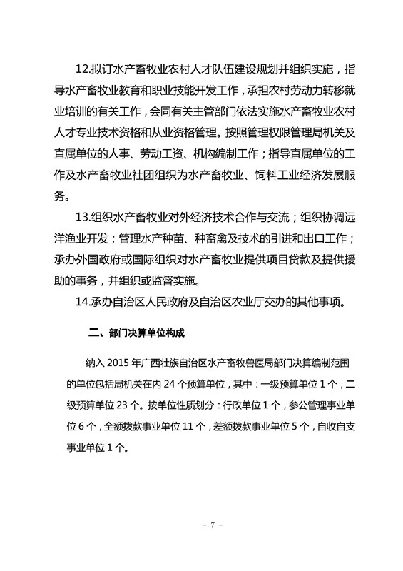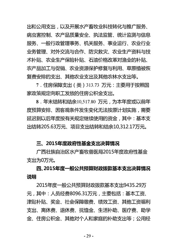 >> 广西壮族自治区水产畜牧兽医局2015年部门决算