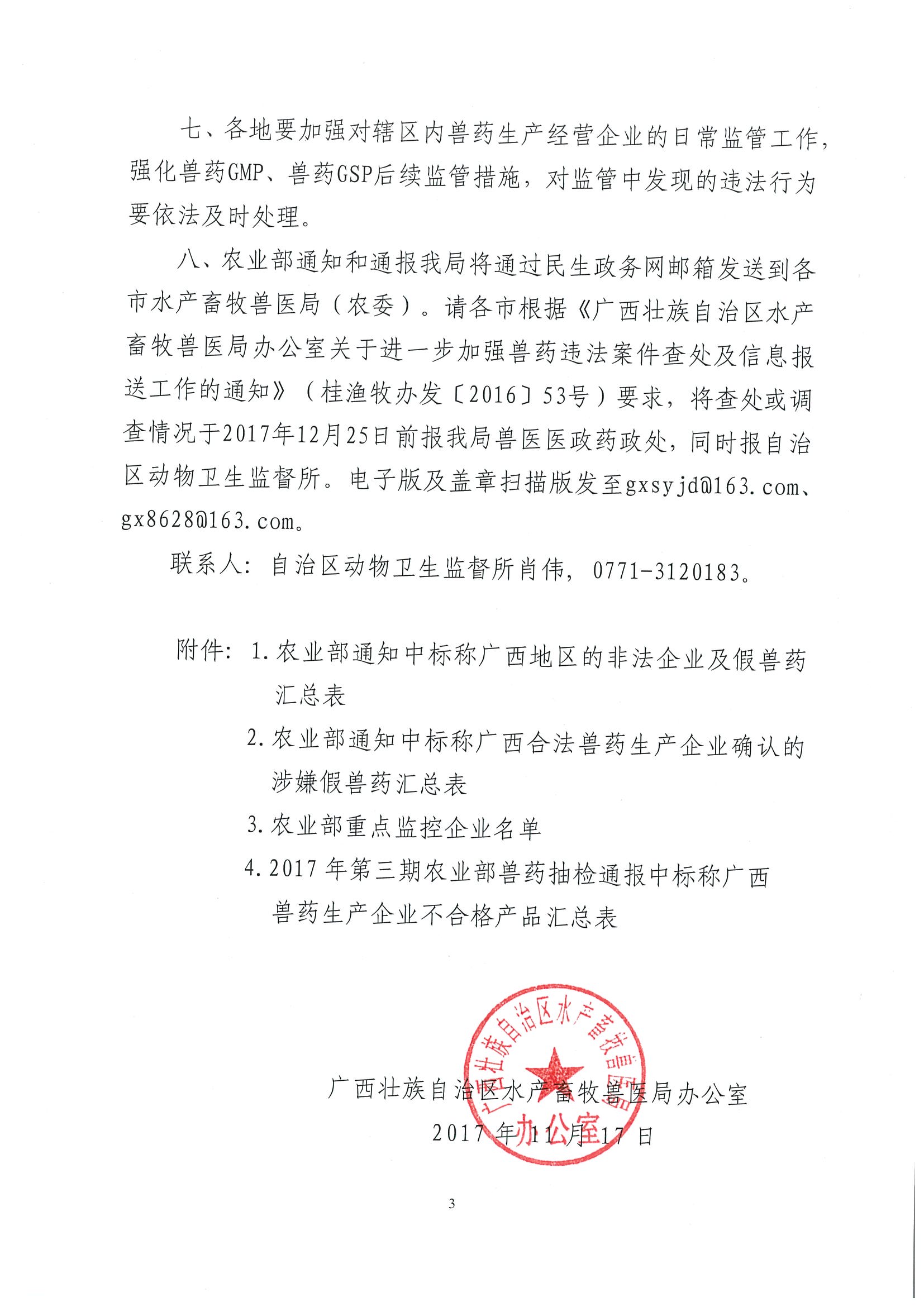当前位置 首页 >> 一服务两公开 >> 监督检查 >> 广西壮族自治区水产畜牧兽医局办公室转发农业部关于组织开展2017年第七至十批假兽药查处活动及2017年第三期兽药质量监督抽检情况通报的通知