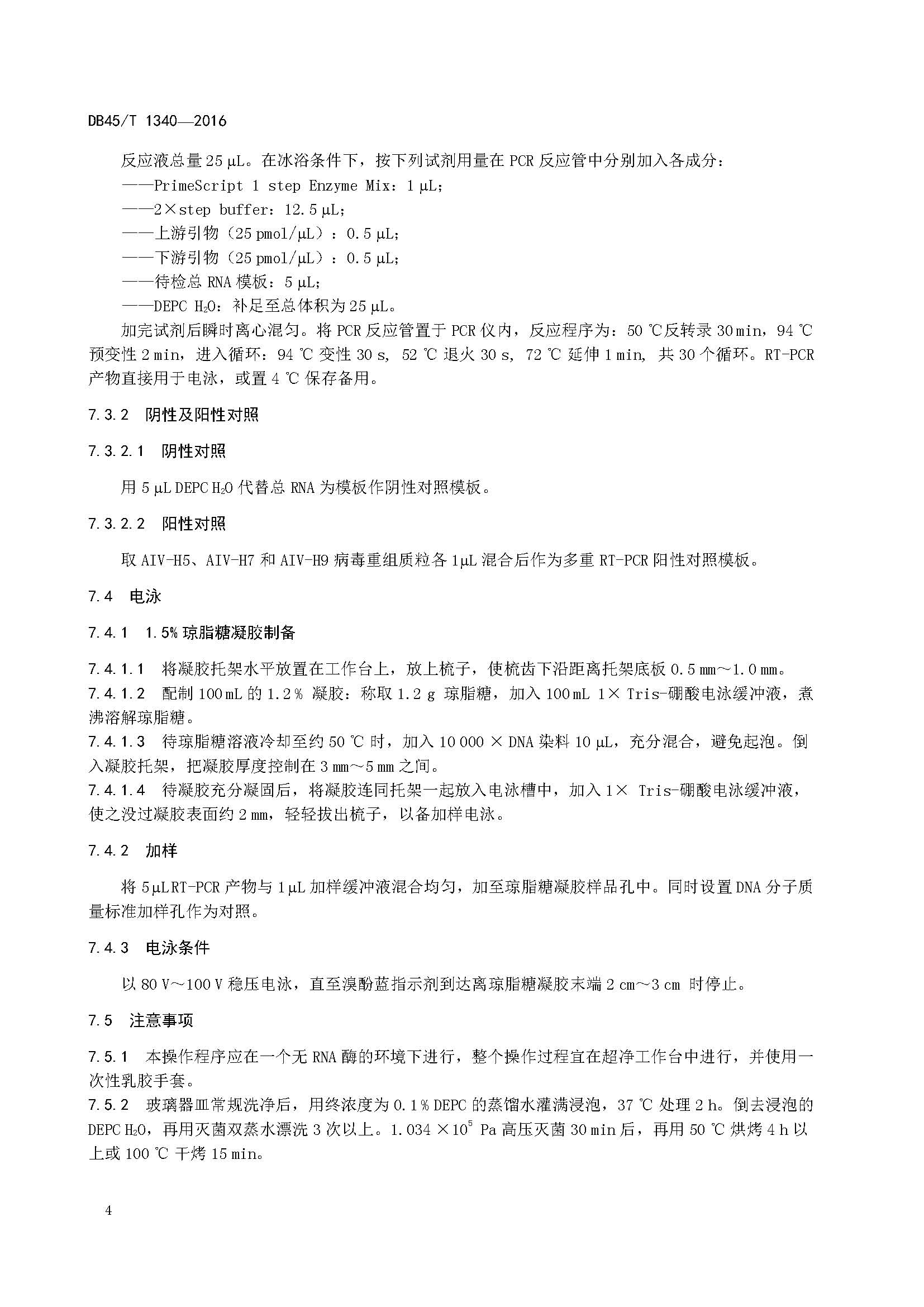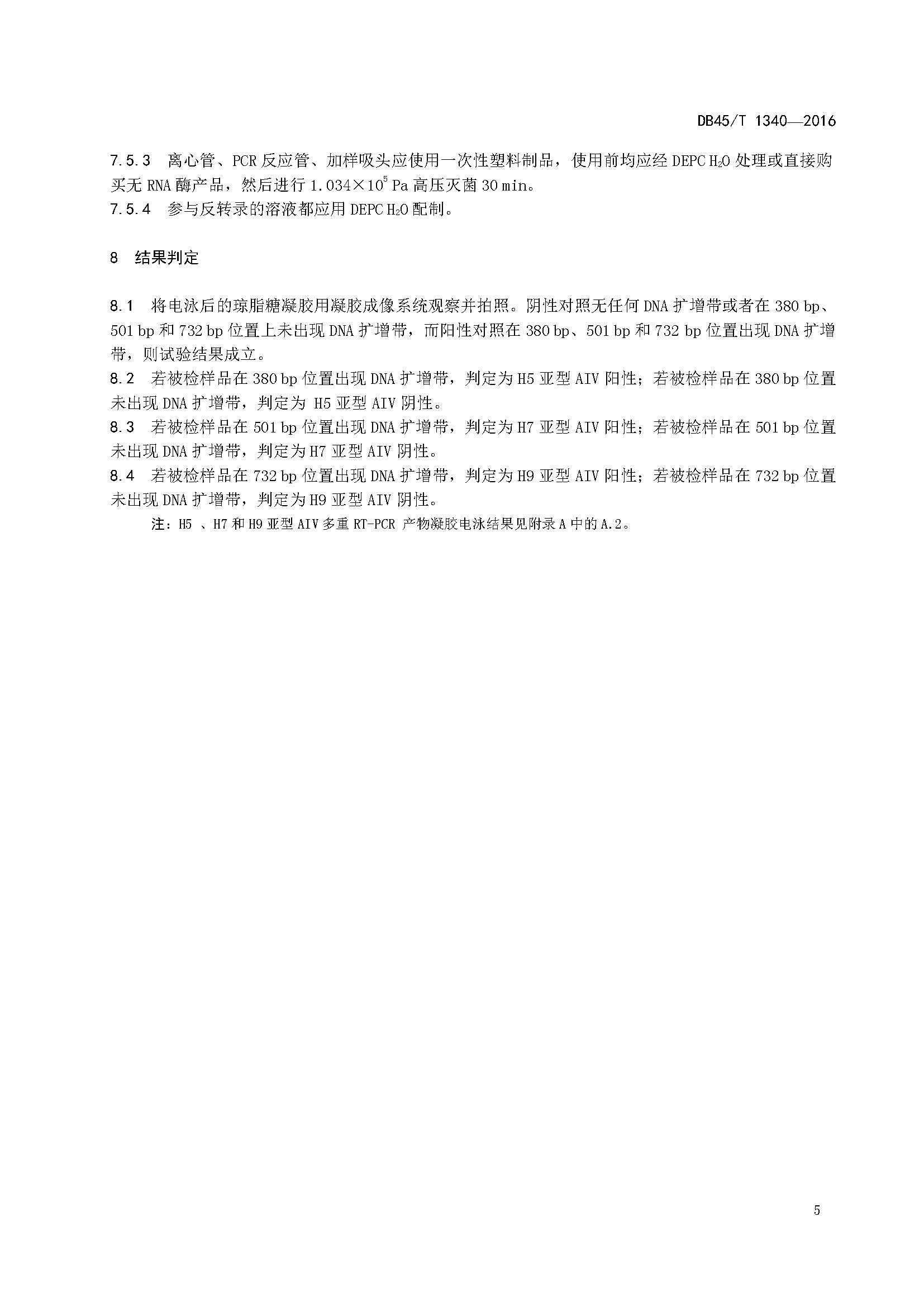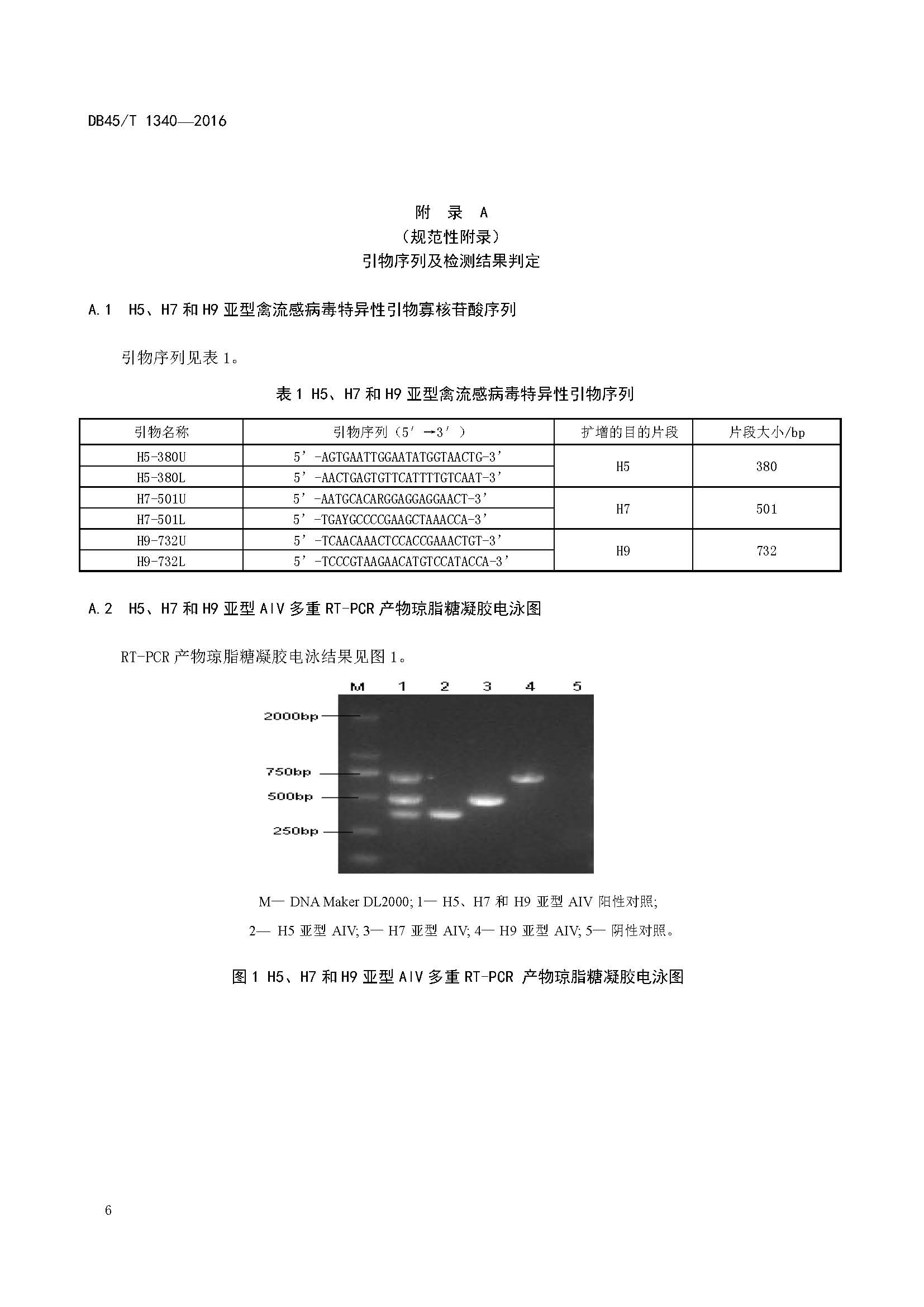 当前位置 首页 >> 健康养殖 >> 养殖技术标准 >> 地方标准 >> 260H5、H7 和 H9 亚型禽流感病毒的检测 多重反转录聚合酶链式反应法(DB45T 1340-2016)