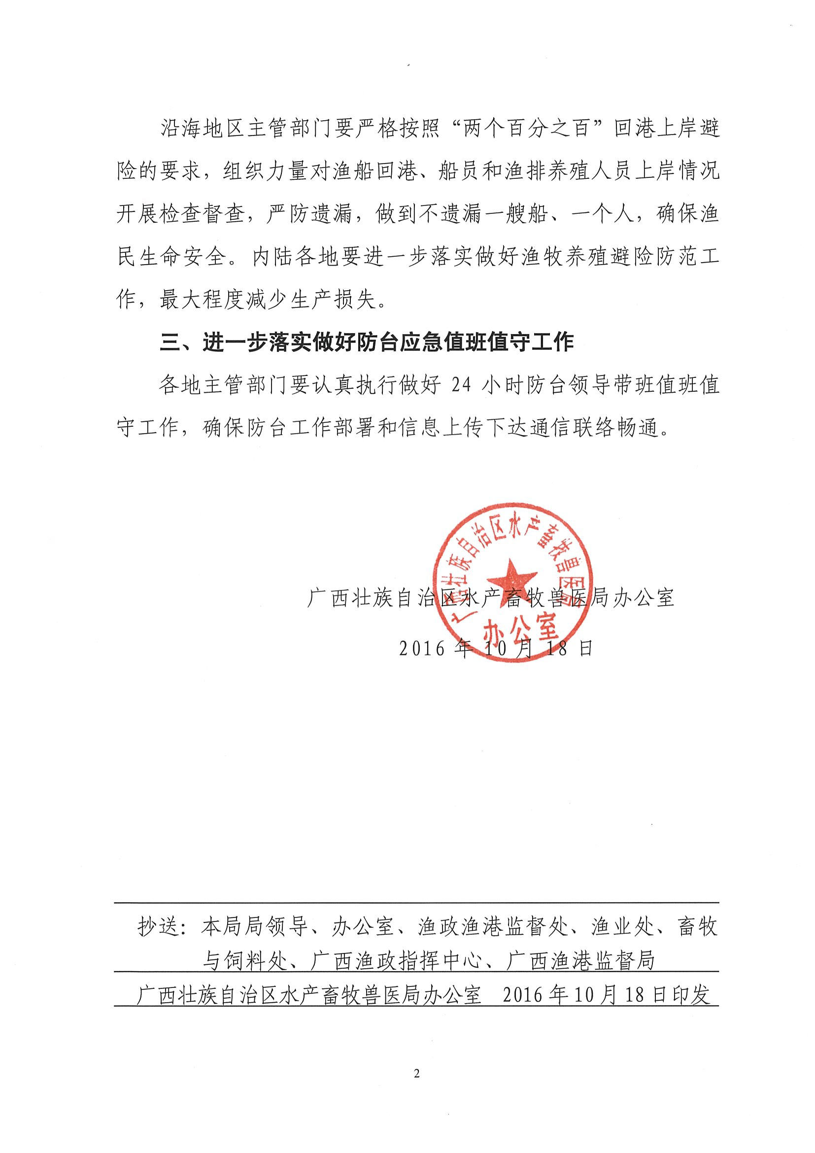 >> 广西壮族自治区水产畜牧兽医局办公室关于第21号台风“莎莉嘉”防御工作的紧急通知