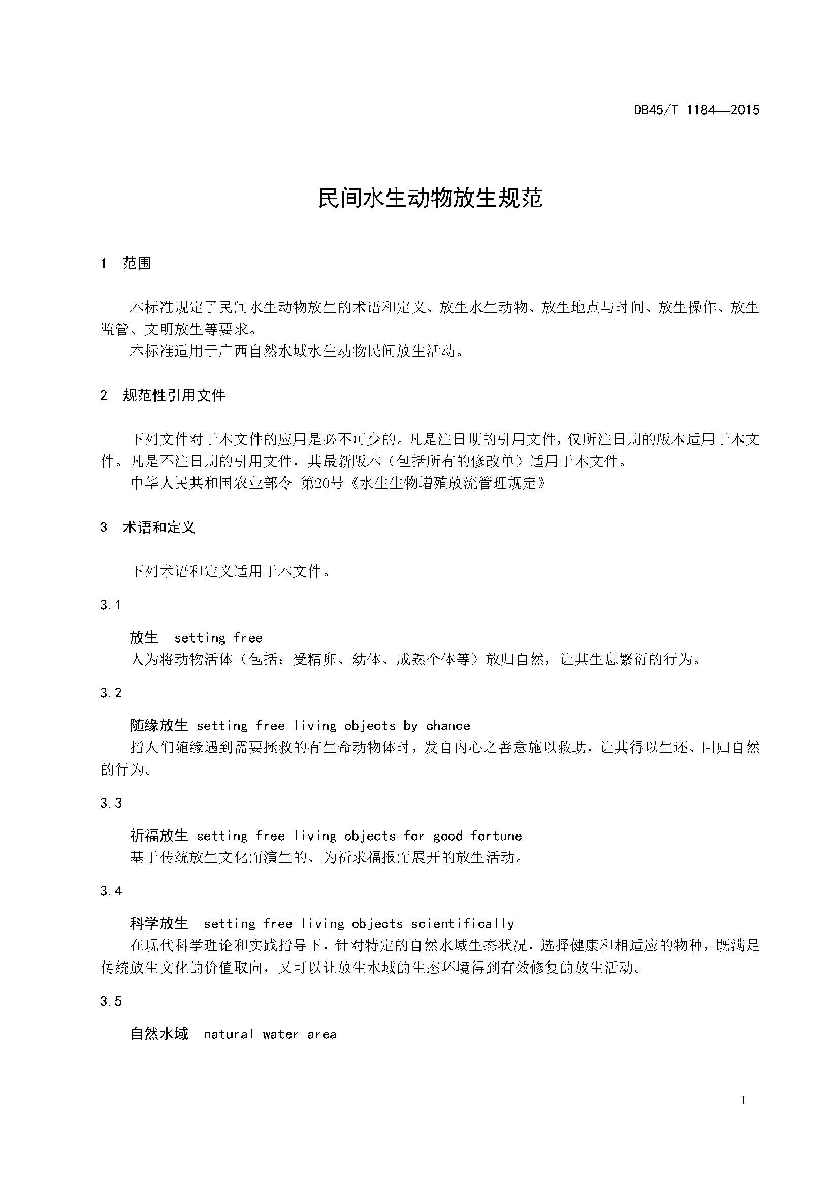 >> 261民间水生动物放生规范(DB45/T 1184-2015)